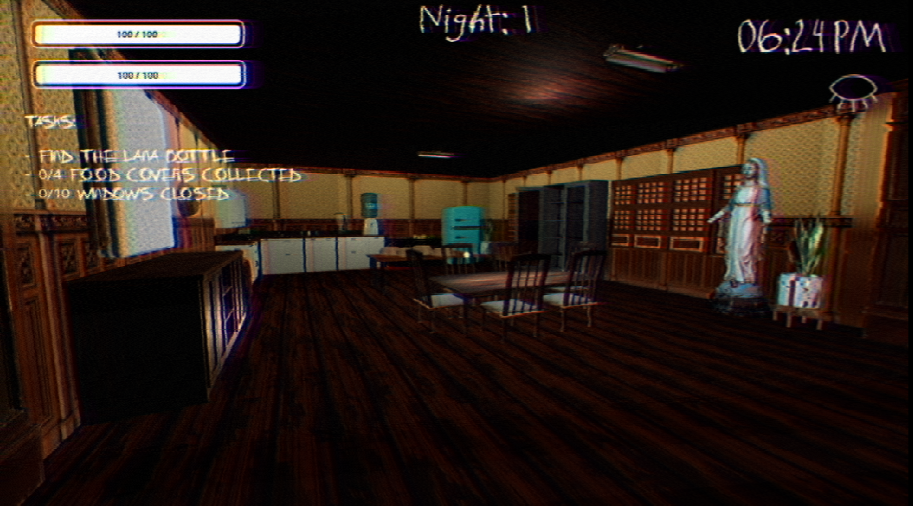 Hi developers, first of all I want to say that this is awesome and that this is not easy to make so I'm really proud. The ambience, the sound effect, the scream, all of it fits so well. Its funny that I can throw a punch. Over all the game was fun, its more scarier because the statues. This is nice!